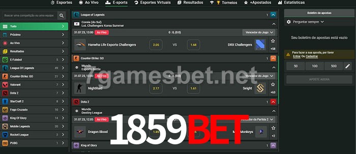 O 1859Bet oferece uma grande seleção de opções de apostas em e-sports com probabilidades competitivas